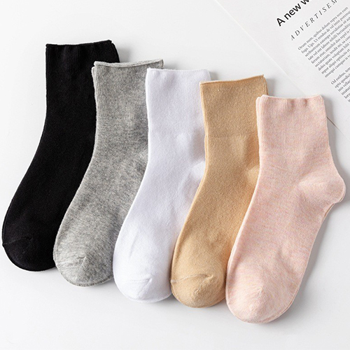 • 5 paar damessokken (maat 38–41) Kleuren: wit, lichtroze, licht perzik, grijs, zwart